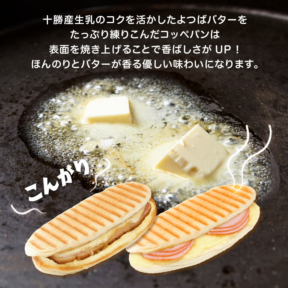 国産小麦のコッペパンをグリルでプレスし、香ばしい焼き目でパニーニのようなサクッと食感を実現。